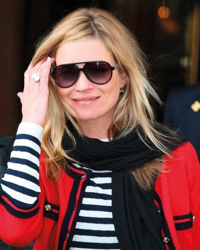طبعت ثلاثية لونية رائعة إطلالة النجمة البريطانية كايت موس. الأحمر والأبيض والأسود، ألوان أشهر شخصية في عالم ديزني، ميكي ماوس. أناقة بسيطة بتوقيع كاشمير «شانيلي» من شانيل فاخر لم تغفل عن اللون الأصفر مع لمسة ساطعة لأزرار السترة والأكسسوار. ألا تبدو نظاراتها الشمسية كالتي يضعها المصمّم الألماني كارل لاغرفيلد؟