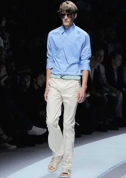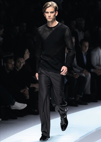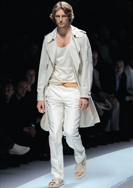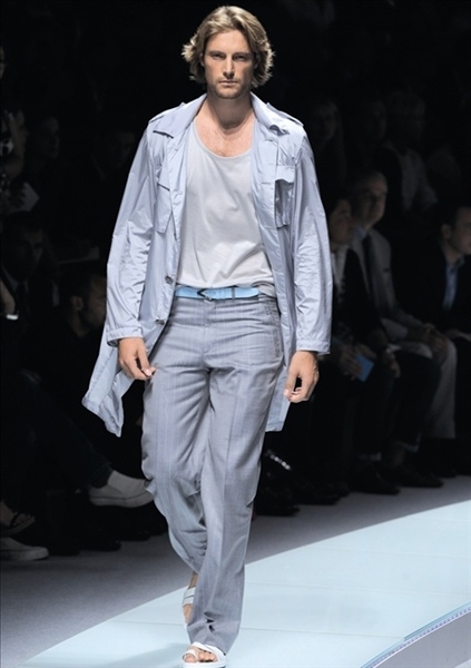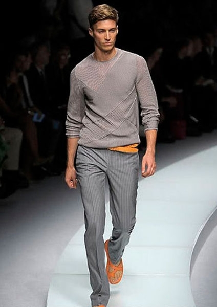 تسعى مجموعة فرساتشي للرجال لربيع وصيف 2009 الى تغيير وجه الملابس الرسمية، فيتّخذ الشكل معنى الحجم والضخامة. ويمكن تلخيصها بالمقولة الروحية المعاصرة التالية: «موقف رسمي، عقلية غير رسمية». فالسترات ذات القصّات المدروسة تتميّز بمعالمها الجديدة وتدلّ على نهجٍ جذري يتحدّى المألوف. وتظهر رقعات القماش من حين الى آخر من تحت طيّات صدر السترة الصغيرة والمنضبطة التي تحدّد الشكل، فينتج عنها أثر تظليل مدهش. وتغيب القبّة عن السترة الكلاسيكية ذات طيّات الصدر المدببة، فتكشف عن قمصان السهرة الرائعة مع صدرية مزدوجة مطوية في النصف تموج برقّة مع كل نفس. وفي أحيانٍ أخرى، نجد قبّة مزدوجة وتصميم السانبورست الذي يبرز في عدد كبير من الملابس الخارجية بما فيها سترات المقاتلين غير الرسمية، وهو مزيج بين الخياطة الدقيقة والزينة المنمنمة.