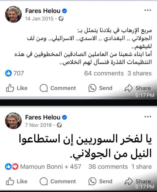 وذكّر ياخور بتدوينة سابقة للحلو يهاجم فيها أبو محمد الجولاني متهماً إياه بالإرهاب وداعياً إلى النيل منه في أوقات سابقة، قبل أن يصفه بـ"الفاتح العظيم" بعد تولّيه زمام السلطة في سوريا.