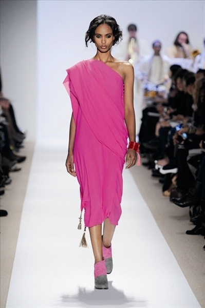 الألوان التي ضمتها المجموعة كانت الزهريّ والكحليّ وألوان الأحجار الكريمة، وركّزت كثيراً على بريق الأقمشة. الفساتين مثل «الساري» ملفوفة قليلاً وفضفاضة، بينما أتى المعطف أكثر تحديداً. أمّا الأكسسوارات فكانت بسيطة، والغاية منها ليست لفت الأنظار.