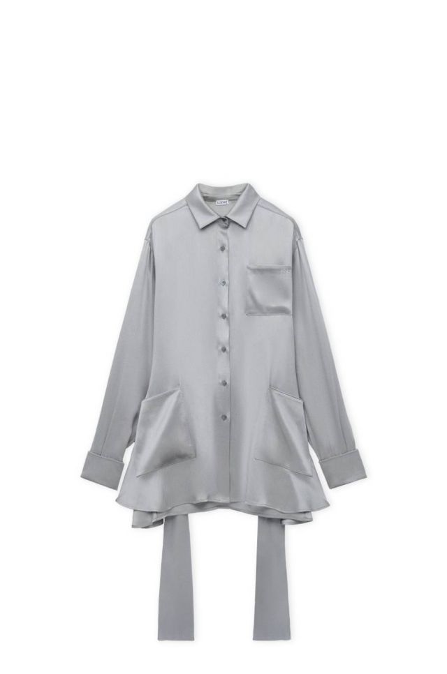 وتقدّم علامة LOEWE تصميماً مبتكَراً لملابس النوم ذات الحزام المصنوع من الحرير الفاخر باللون الرمادي، بالإضافة إلى أطقم من جلد النابا باللون الأبيض العاجي والمؤلفة من السراويل الواسعة والقمصان المزيّنة بالأزرار، التي تتميز بأساليب الحياكة المتقنة والمرونة الفائقة. كما تزخر التصاميم بتوليفة من التفاصيل الجذّابة بدءاً من الفساتين المزينة بالكريستال والأزرار الفضية التي تحمل شعار العلامة، وصولاً إلى مجموعة من القمصان عاجية اللون المزيّنة بالزخارف وفساتين الحرير باللون الأزرق الفاتح، إلى جانب معطف رسمي أنيق باللون الأزرق الداكن.
