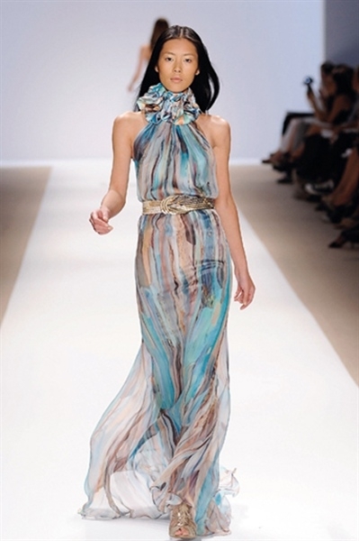 هذا الموسم أراد Carlos Miele أن يقدّم الفساتين التي نحبّها ولكن أيضاً قطعاً منفصلة مثل التنانير والقمصان والسراويل، وحتّى الجينز الذي قدّمه أنيقاً مع سترة بلون البيج مرصّعة بالأحجار، أو مع قميص أسود شفّاف. الأقمشة المطبوعة التّي عوّدنا عليها كارلوس بالطبع موجودة، بألوان الأبيض والأسود والتركوازيّ والبنيّ والبيج وطبعات جلد الحيوان، أو بألوان متموّجة من الأخضر والبنفسجيّ. رأينا أيضاً الفساتين القصيرة، في هذه المجموعة أيضاً نلاحظ الحبال بألوان مختلفة، سواء سترات البوليرو القصيرة المشغولة على اليد أو الأحزمة أو الفساتين...