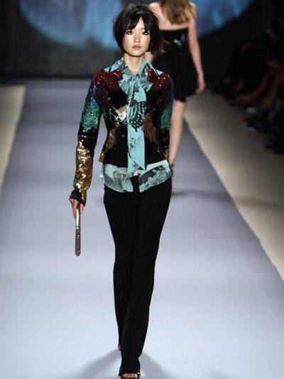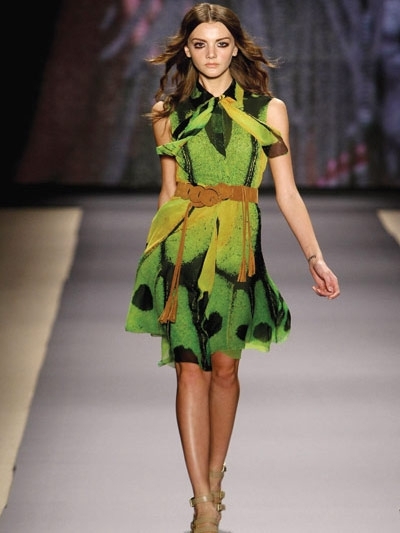 الفراشات في كلّ مكان... مطبوعة على الأقمشة، مشكوكة بالخرز على الفساتين أو القمصان، أو علّقتها Vivienne على التصاميم. حتّى فستانها مطبوع بالفراشات... وهي تعاونت مع HP لإطلاق كمبيوتر ملوّن بحجم صغير من تصميمها. هذه المجموعة استوحتها فيفيان من أسطورة صينيّة عن قصّة حبّ، فأتت التصاميم شابّة ومنطلقة، يمكننا القول إنّها تعيدنا إلى السبعينات، مع الكثير من جلد «الشاموا»، والشعر الطويل المنسدل والحقائب الضخمة...