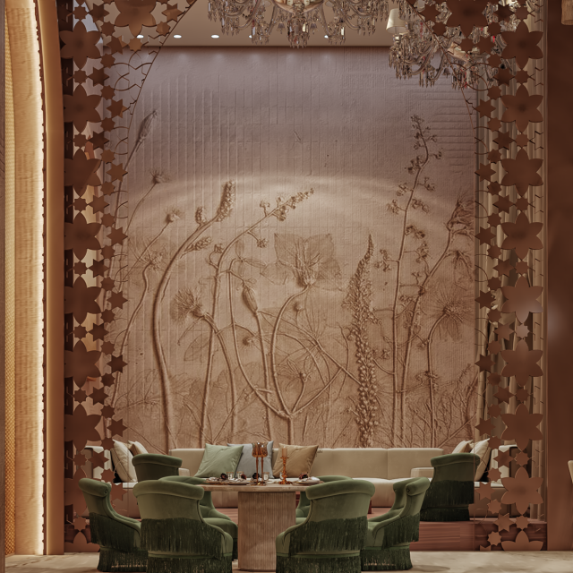 ستروي الخيمة حكاية الجمال العصري الممزوج بالتقاليد الأصيلة من خلال تصميم داخلي يعكس الفخامة والدفء. وستتزيّن المساحات بمفروشات فاخرة مصنوعة من أجود الأقمشة، مثل: المخمل والحرير الخام، مع أثاث أنيق يمزج بين الرخام الفاخر والخشب متقن الصنع. وستكتمل هذه اللوحة الفنية بألوان دافئة مستوحاة من درجات الموكا والتيراكوتا، المتناغمة بين ظلال البنّي والأحمر، في تحية للّون الأبرز لعام 2025 ولمسات العمارة المغربية التقليدية التي تضفي طابعاً ساحراً وفريداً.