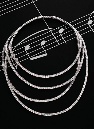 يمثّل الجاز روح مجموعة بياجيه الجديدة للعام ٢٠١٠ بطابعها الإبداعي. يختار عازف البيانو في نادي الجاز بعضاً من النغمات التي تتوالى من ألحان البلوز الكئيبة الى موسيقى السوينغ المرتجلة. إنه وقت الرقص: تعتلي المسرح إحدى المغنيات بكامل جاذبيتها ويغلب صوتها المخملي على غناء الفرقة ليحكي قصة خاصة ويتحوّل الى لحظة أثيرية.