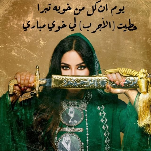 من أبرز العناصر التي أضافت إلى إطلالة لجين عمران في "يوم التأسيس"، حملها للسيف الذهبي والفضّي. هذا السيف الذي يرمز الى القوة والشجاعة في الثقافة السعودية، يمثّل التحية لتراث المملكة العسكري العريق، ويعكس الفخر بالعراقة التي تربط السعودية بحضارتها ومكانتها في المنطقة.