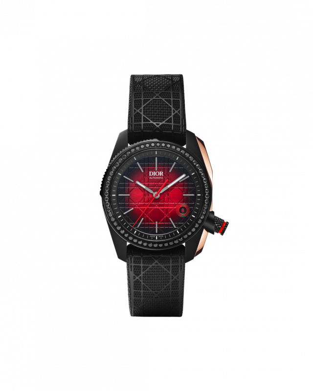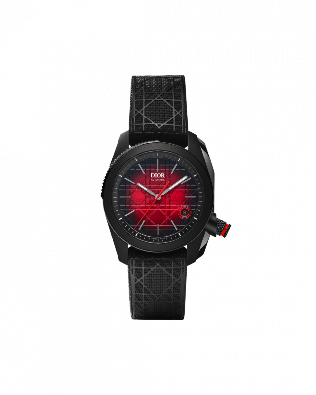 تتميز الأقراص بتدرّجات لونية جذّابة باللون الأحمر، مع محيط داكن ونمط أشعة الشمس اللامع. كما يتزيّن النمط التقليدي «كاناج» على عجلة التوازن والأساور المطاطية القابلة للتبديل، ليكمل الإطلالة الأنيقة لساعات Dior. هذا المزيج من التفاصيل المصقولة والجريئة يُضفي تبايناً جذّاباً على التصميم.