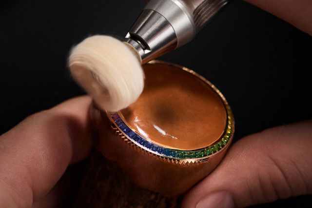 تتميز كل هذه الساعات بآليات ميكانيكية دقيقة تُعرض عبر الجهة الخلفية بفضل تصميم شفّاف يعكس مهارة المشاغل الحِرفية.