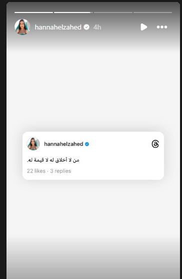 نشرت الفنانة هنا الزاهد عبر خاصية القصص المصورة الملحقة بحسابها الخاص في "إنستغرام" منشوراً غامضاً أثارت به الجدل، حيث اعتبره العديد من جمهورها رسالة مبطّنة قصدت بها شخصاً محدداً.