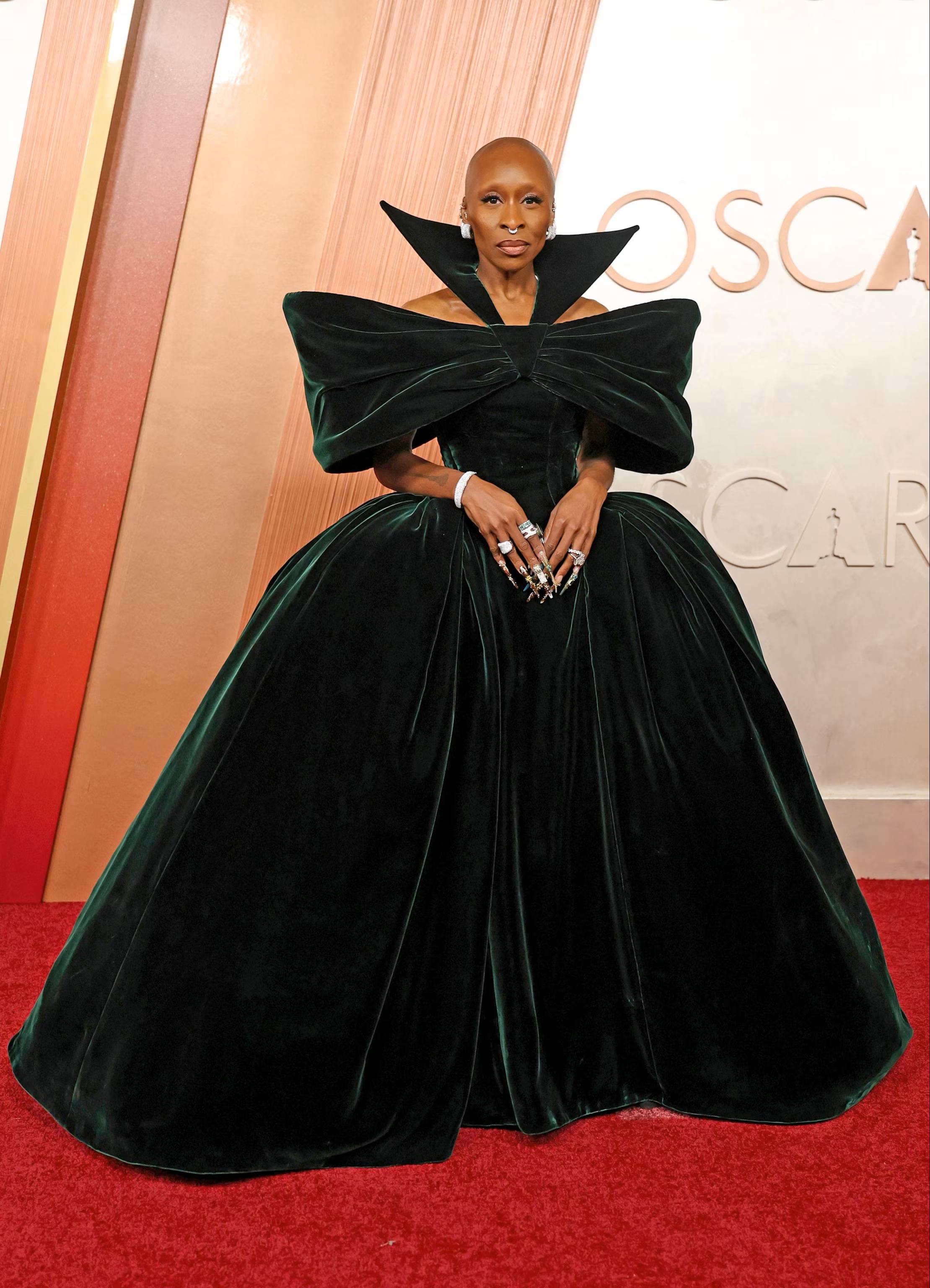 من بين الإطلالات التي لفتت الأنظار، اختارت الممثلة سينتيا أريفو فستاناً بدا وكأنه من عالم آخر، كان يحمل تفاصيل درامية تعكس الأناقة الكلاسيكية. تنورة الفستان الواسعة والمطرزة، مع الأقمشة المترفة التي أضفت حجماً على التصميم، جعلت سينتيا تتألق وكأنها ملكة في عرض مسرحي. كان لهذا الفستان حضور قوي على السجادة الحمراء، حيث مزج بين الفخامة والدرامية بشكل سلس، ليكون من أبرز الإطلالات في الحفل.