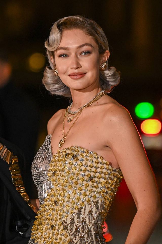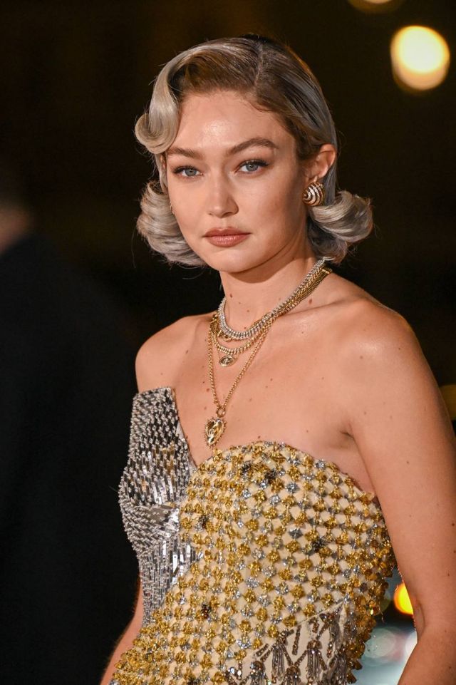 وأكملت جيجي حديد إطلالتها بمجموعة من المجوهرات الناعمة، فزيّنت رقبتها بسلاسل ذات طبقات وتصاميم متعددة الأشكال والأحجام مع أقراط ناعمة وخواتم ضخمة، لإضافة المزيد من الفخامة إلى طلّتها النهائية.