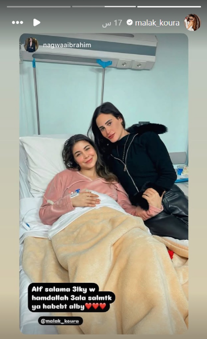 وظهرت ملك قورة في الصور وهي ترقد على سرير في المستشفى، وبجانبها صديقاتها اللواتي هنّأنَها بالسلامة.