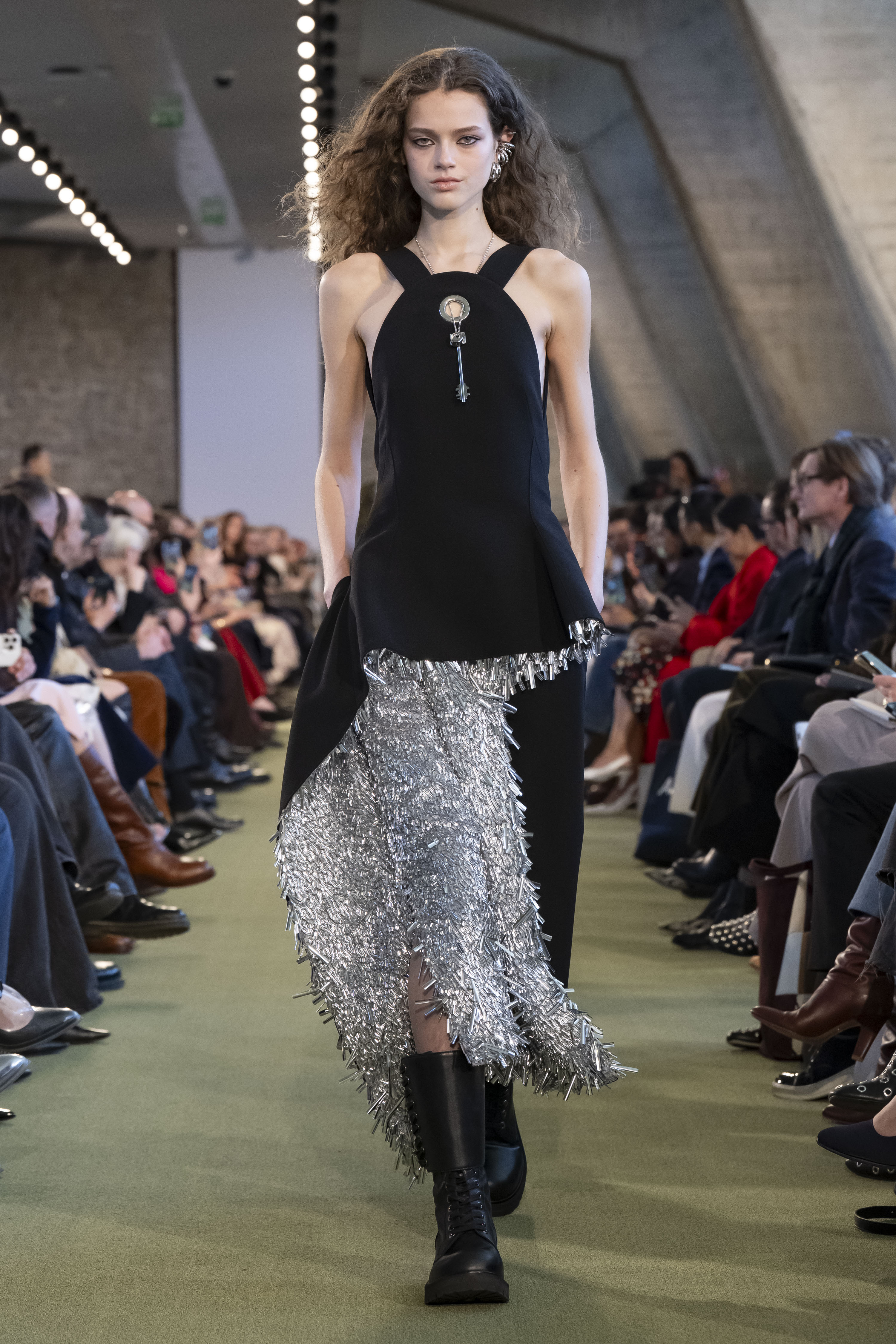 وتطفو الأغماد اللامعة المكشكشة فوق الفساتين المصنوعة من الجلد أو الصوف، وتكشف الفساتين الشفّافة الأطول عن جسم يلمع من تحته. وترتكز هذه الإطلالات على أحذية قتالية مربوطة بشكل مرتفع لإضفاء مظهر أقوى، في حين تُنتَعل أحذية ماري جين مع الجوارب اللامعة، مما يوحي بتأثير الغرونغ وسط تلميحات أخرى الى الماضي.