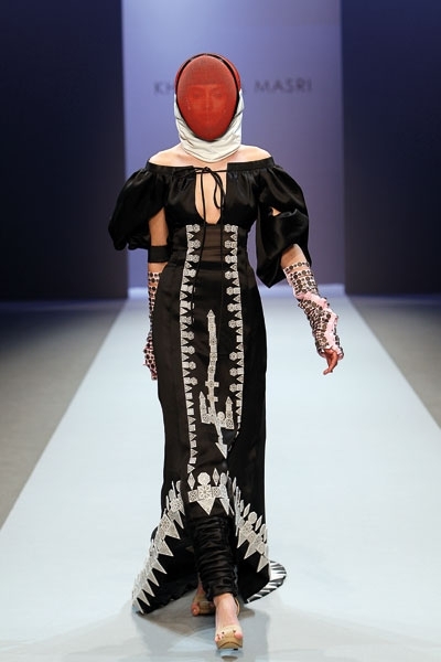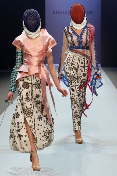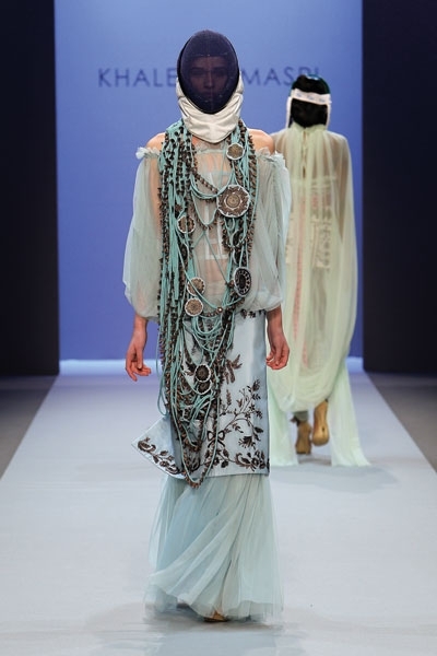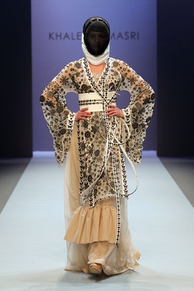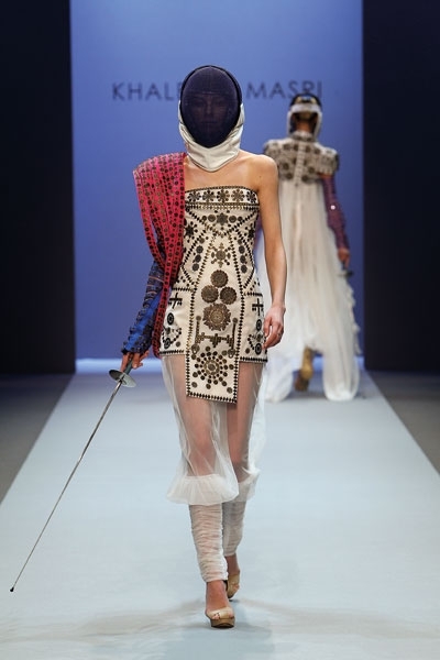 في مجموعته لربيع وصيف 2010 قدّم خالد المصري تصاميم عصرية إلى أقصى الحدود فزخرفها بقطع معدنية وزعها بشكل رسوم تختلف بحسب الفكرة الأساسية للزي الذي يقدّمه. لكن في الوقت نفسه تبقى النقوش التي تزيّن كل تصميم كأنها تواقيع تعرّف عن مبدعها. والجديد استعماله لقطع «البلكسي» الملوّنة لتزيين أزيائه وكأنها لوحات من الموزاييك. وليس جديداً أن يمزج المصمم مواد عدة رغم صعوبة التنفيذ، ليحافظ على أسلوبه الخاص.
