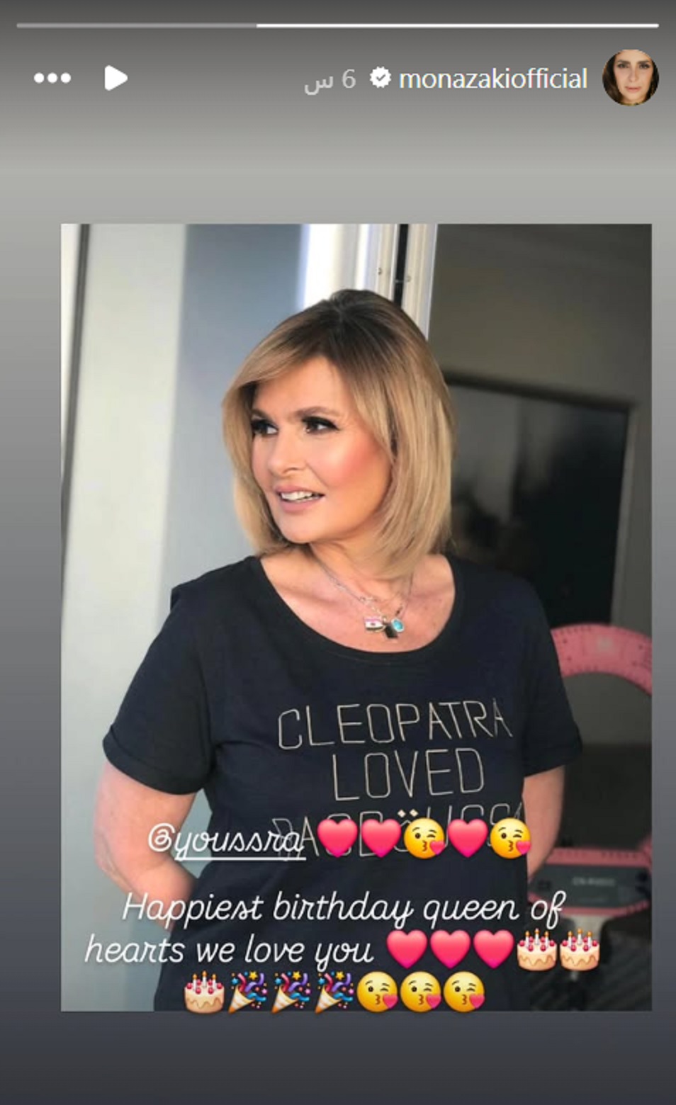 ونشرت منى على خاصية القصص المصورة الملحقة على حسابها الخاص بـ"إنستغرام" صورة ليسرا وجّهت لها من خلالها رسالة مؤثرة مليئة بكلمات تعبر عن الحب والتقدير لها، إذ قالت: "كل سنة وأنتِ طيبة يا ملكة القلوب، كلنا بنحبك".