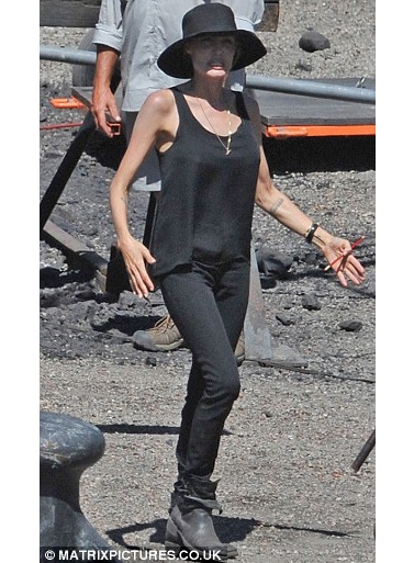 في سيدني الأوسترالية وتحديداً Cockatoo Island ، وقفت نجمة هوليوود الأميركية أنجلينا جولي (38 عاماً) لتدير طاقمها الفني الذي تخوض معه تجربتها الإخراجية الثانية، فيلم Unbroken. كعادتها ارتدت اللون الأسود ما عزز نحولها، وما جعلها تبدو أكبر سناً.