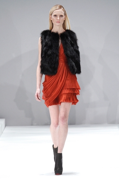 لعب المصمّم Gilles على الأقمشة كثيراً، مثل فستان التويد للنهار الذي أضاف إليه المعادن من ذهبيّ وبرونزيّ وفضّي... وللسهرة قدّم أقمشة خفيفة جدّاً مثل العادة، ولكنّ درجات الألوان التي اختارها من الأحمر الداكن القرميديّ والأزرق والأخضر الحشيشيّ كانت مختلفة ومميّزة. وطبعاً برزت مثل العادة تصاميم من الفرو الثمين الذي اشتهرت به دار J.Mendel.