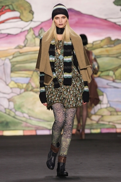 هذه المجموعة كما قالت Anna Sui في الكواليس هي «ردّة فعلها» على عصر الكمبيوتر والتقنيّة، استلهمتها من حركة الفنون والأشغال اليدويّة في أميركا في نهاية القرن التاسع عشر. فهي لا تأبه بما تقدّمه الموضة ولكن تستمدّ أفكارها من التاريخ والثقافات المختلفة في العالم. وهذا الشتاء، أدخلت تصميم «الأثاث» إلى أزيائها في مطبوعاتها المعروفة بها، وأكسسواراتها المستوحاة من قطع «البلاط». واللافت ان الفساتين البيضاء التي قدّمتها في نهاية العرض كانت رومانسيّة جدّاً.