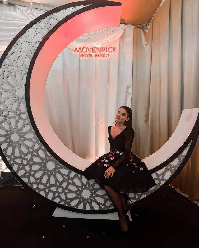 حضرت النجمة سارة أبي كنعان مع زوجها النجم وسام فارس، مرتدية جمبسوت أنيق باللون الأسود من علامة Thym تميز بتصميمه الفخم بياقة مفتوحة على شكل V، مع الدانتيل الشفاف عند منطقة الخصر، إضافة الى الأكمام المنسدلة بأسلوب الكاب بقماش شفاف. وتزينت بأقراط ذهبية كبيرة الحجم مزينة بحجر الياقوت الأحمر وهو ما أضاف لمسة من الأناقة والفخامة الى إطلالتها.
