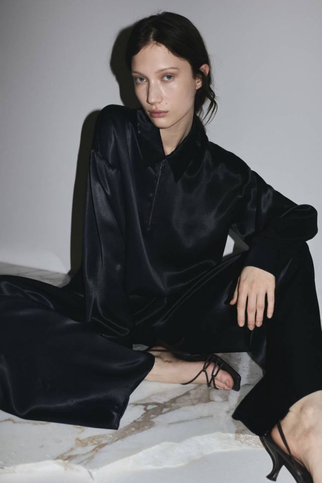 تُضفي الأطقم الأنثوية لمسةً من الرقي مع أطقم الساتان، بما في ذلك قميص وردي وتنورة ماكسي، وقميص بولو أسود أنيق بسحّاب مع بنطلون بخصر مطّاطي. طقم جيرسي مريح بتفاصيل شراريب يُضفي لمسةً مميزة على المجموعة.