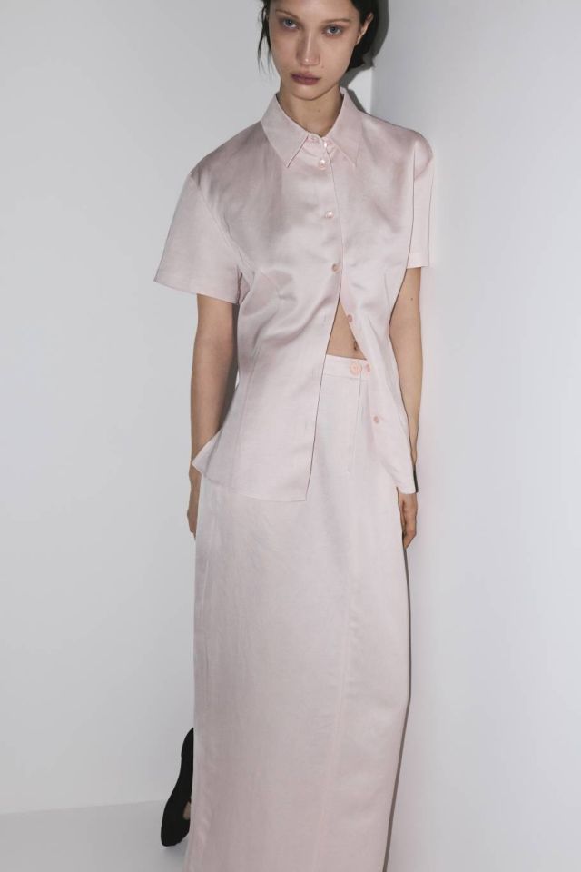 تتميز المجموعة بتباين في الخامات والألوان، بدءاً من جلد السويد والأورغانزا، مروراً بالوردي الباهت، وصولاً إلى الشوكولاتة الداكنة والأسود اللامع. وتتألق الملابس الخارجية بقطع مميزة، مثل سترة من جلد السويد الطبيعي باللون الوردي الناعم، ومعطف ترنش قصير بتصميم هندسي، ومعطف أنوراك قطني بتفاصيل محبوكة قابلة للإزالة وإكسسوارات ذهبية بلمسات جلدية.