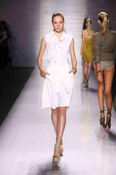 المرأة التي ستختار مجموعة Elie Tahari هذا الصيف ذكيّة وجذابة، كما يصفها لنا تاهاري الذي يستوحي دائماً مجموعته من المرأة في نيويورك. هذا الموسم ركّز على المرأة الأميركيةّ عامّة، بأزيائها العمليّة والعصريّة... المرأة في السبعينات، أكثر تحديداً، مثل العارضة Lauren Hutton.. وقد رأينا في هذه المجموعة السراويل القصيرة shorts، بكثرة، مع قميص أبيض أو سترة عسكريّة، والفساتين عارية الأكتاف. ولكن لا تخافي، فمجموعته ضمّت أيضاً الأزياء العمليّة الكلاسيكيّة التي تعوّدت عليها من تنانير طويلة وسراويل وسترات تلائم اكثر الطلّة المحافظة. ألوانه كانت من ألوان الطبيعة، مثل البيج والذهبي، بالإضافة إلى الجينز والأسود. كما قدّم مجموعة صغيرة من الحقائب العمليّة لكلّ يوم.