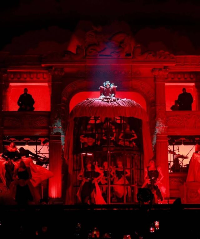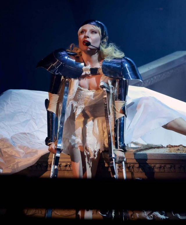 النجمة ليدي غاغا لم تخذل جمهورها في مهرجان المفاجآت، حيث ارتدت زيّاً فنياً مستوحى من عالم الطيور، تميز بالريش الضخم وقفّازات تحاكي مخالب جارحة، من تصميم علامة "فيكال ماتر" المعروفة بابتكار قطع خارجة عن المألوف.