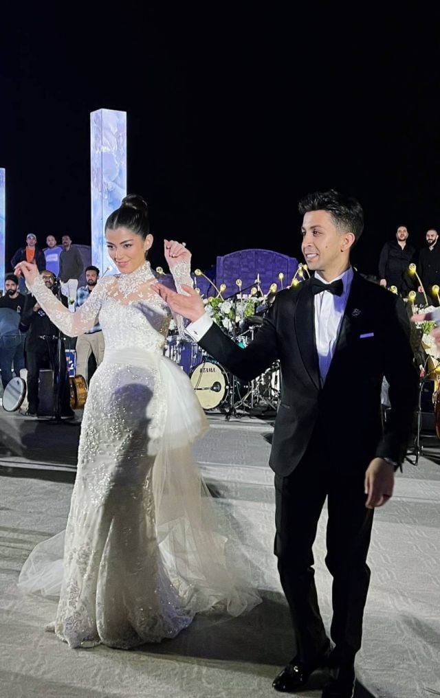 وكان نجم الحفل بدون منازع، فستان الزفاف الخيالي الذي اختارته ليلى من توقيع المصمم اللبناني العالمي زهير مراد، والذي استطاع أن يحوّل أحلام العروس إلى واقع ملموس، يجمع بين الرومانسية الحالمة والطابع الملكي الفاخر.