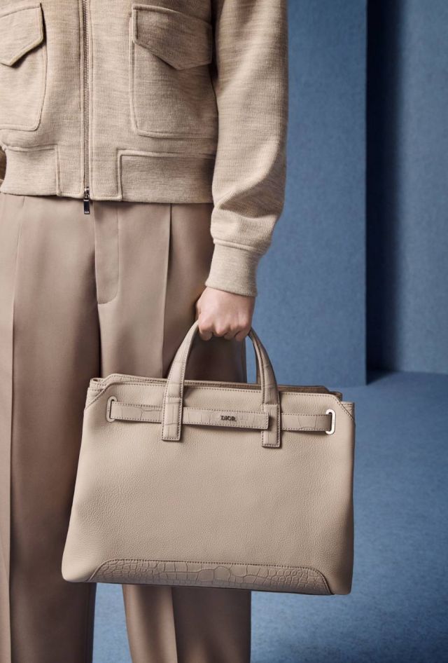 من خلال تحقيق التوازن بين البساطة والأسلوب المنمّق، تُجسّد الحقائب خبرة المشاغل الاستثنائية، لا سيّما حقيبة "ديور نورماندي" المتوافرة بثلاثة ألوان آسرة: الأسود والرمادي ولون الكونياك. واحتفالاً بتراث الدار الفريد وصولاً إلى أدق التفاصيل، تتميّز ابتكارات مجموعة "ديور بريفيه" ببطانة من جلد العجل المعالَج بأسلوب سويد معزّزة بنمط "ديور أوبليك".