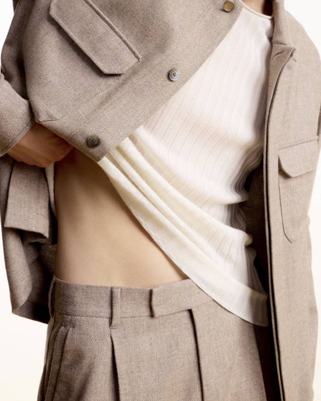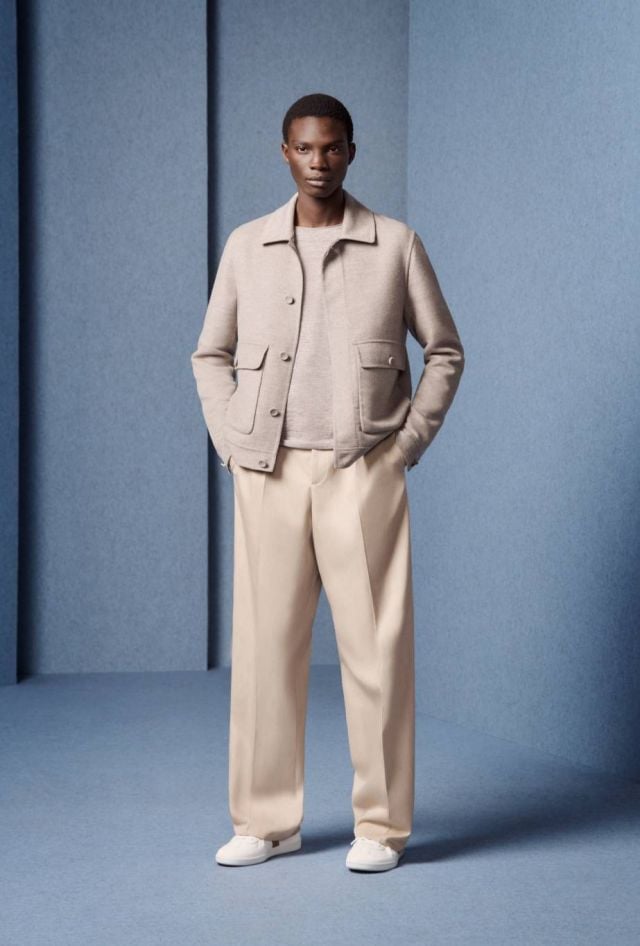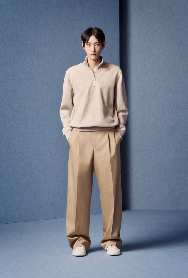 تتألق المجموعة بقطع انسيابية وخفيفة الوزن تُعبّر عن الفخامة الرصينة، بما في ذلك السراويل واسعة الساقَين والقمصان سهلة الارتداء والتيشيرتات الراقية المصنوعة من القطن والحرير.
