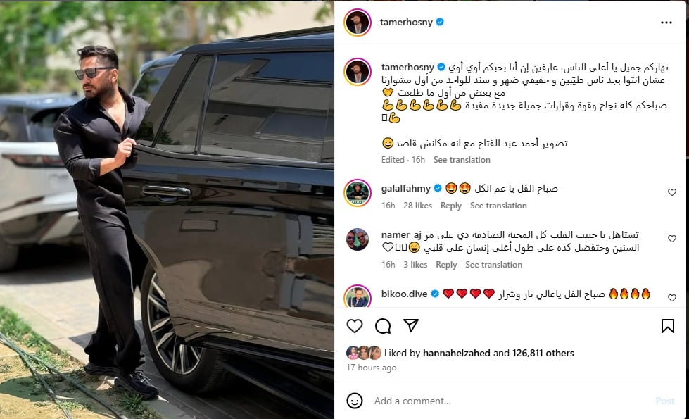 وتفاعل المتابعون مع منشور تامر مؤكدين حبهم له لأنه يمتلك مقومات الفنان الحقيقي بسبب عفويته وطيبته ومواقفه الإنسانية.