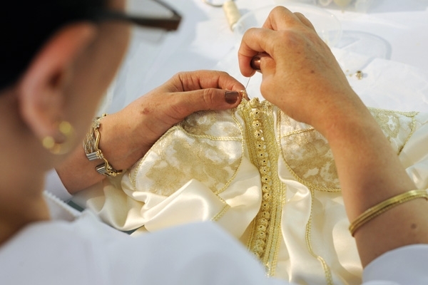 نشتغل في جو عائلي يسوده الاحترام، لا توجد بيننا مراتب، فالقفطان مثلا يمر بمجموعة من الأيادي، وكل يد لها طابع خاص وتضيف أشياء مختلفة عن الأخرى، وأكون قريبة جدا من هذه الأيادي الصغيرة.
