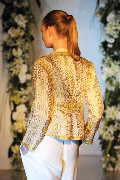 في صغري كنت أزور خالاتي في مراكش، في هذا الجو الحماسي، بـ«الرياض»، تملكني الحنين والحب لهذا العالم المتفرد. كنت في البداية معجبة بهذا الخليط من الألوان بالجدران، وهذا التبليط، وهذه المفارش المتنوعة، وكنت مأخوذة بأدق التفاصيل. لكنني كنت، بكل تأكيد، مهووسة بخيالات النساء المترفات في هذه القطع من الملابس: سروال، تشامير، قفطان، مجدول، إلى جانب قصات شعورهن المختبئة وراء وشاحات على الرؤوس، عالم دفعني إلى ابتكار مجموعاتي الخاصة.