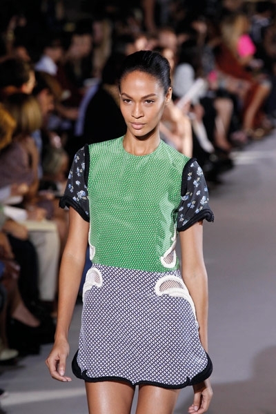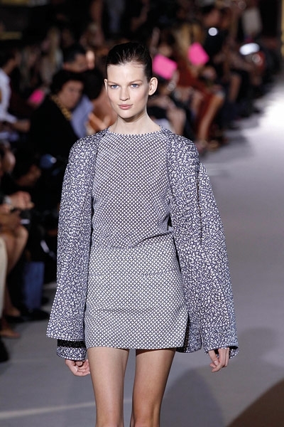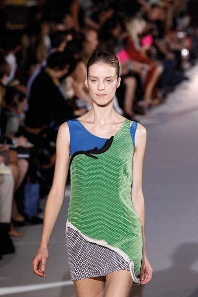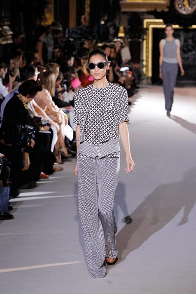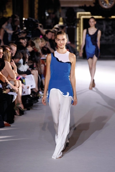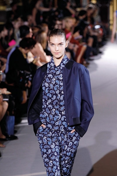 لا يمكن أن تختصر مجموعة المصمّمة ستيلا ماكارتني إلاّ بعنوانين : نقوش ميكروسكوبية ونقوش البيزلي. أما الألوان التي سادت المنصة فهي الأرزق بتدرجيه الملكي والكحلي الداكن والأحمر القرميدي. بدت بعض تصاميم المجموعة كملابس النوم الرجالية المزودة بالجيوب والمطبّعة بالنقاط أو الأشكال الهندسية بالكامل. فيما اتسعت المنصة لانحناءات البيزلي التي طرّزت أطراف الفساتين الصغيرة إلى جانب طباعته ليحلّ مكان حمضيات الموسم الماضي. النقوش هي طقوس أناقة دار ستيلا ماكارتني لأناقة ربيع وصيف 2012. تفاصيل قد تكون استوحتها ماكارتني من ربطة عنق رجل.