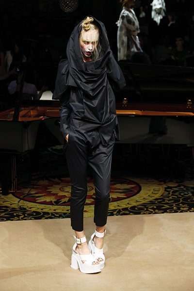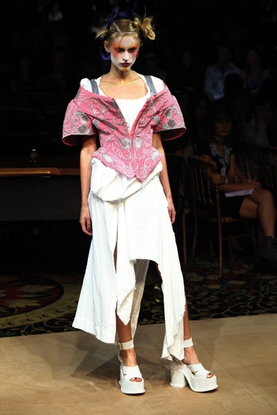 لا يمكن تفكيك شيفرة موضة هذا الموسم لدى دار فيفيان ويستوود دون استرجاع صورتها على مستوعب القمامة الضخم والأخضر ضمن حملتها المناهضة لـ «آفة الإستهلاك». حضر بانك السبعينات الذي أرسته مجدداً، لكن هذه المرة متحالفاً مع أناقة الغيشا والكورسيه الباروكي والملابس المجعّدة كما لو أن ويستوود جنّبتها مصير الرمي.