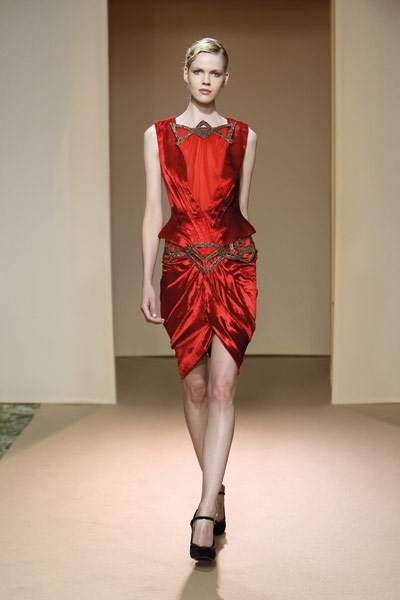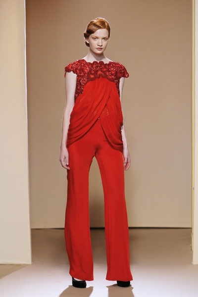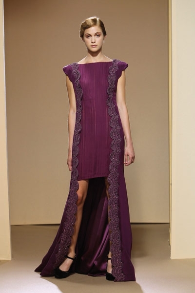 أما الأقمشة فتميزت بشفافية مطلقة فطوّعها المصمم بأنوثة راقية وأنيقة في فساتين طويلة هدلة وأخرى قصيرة لافتة بجرأتها. ومن الأقمشة الحساسة المستخدمة الدانتيل والموسلين والأورغنزا والتول التي ازدادت بريقاً بالتطريز الذهبي. بدت التصاميم مصممة للمستقبل ولافتة بالأشكال الهندسية الواضحة بزواياها وخطوطها. كما أدخل المصمم لمسات من موضة "الشارلستون" بقماش الدانتيل وخيوط الحرير. وأتت الاكسسوارات المعدنية لتكمّل فكرة المصمم بتنسيقها مع التصاميم والتطريز.