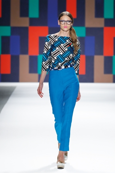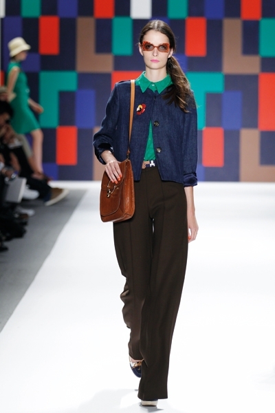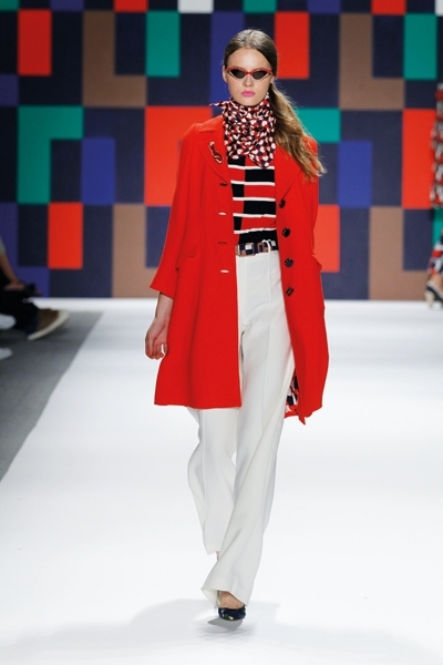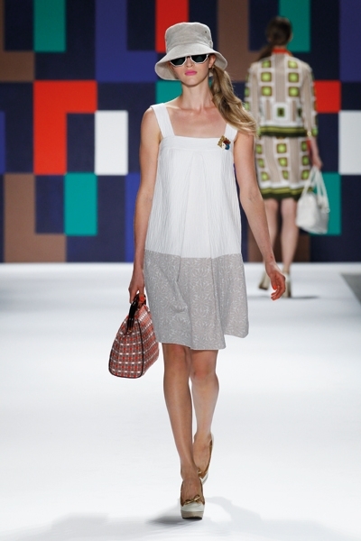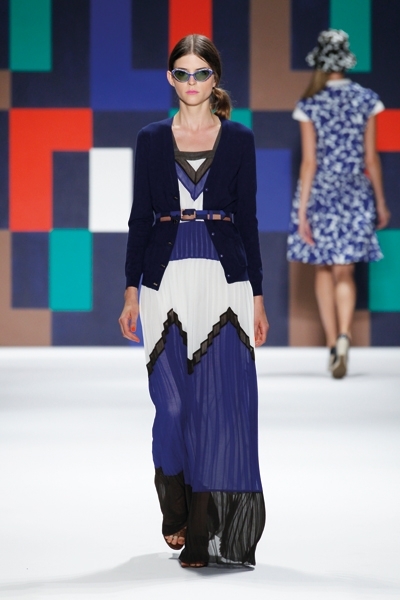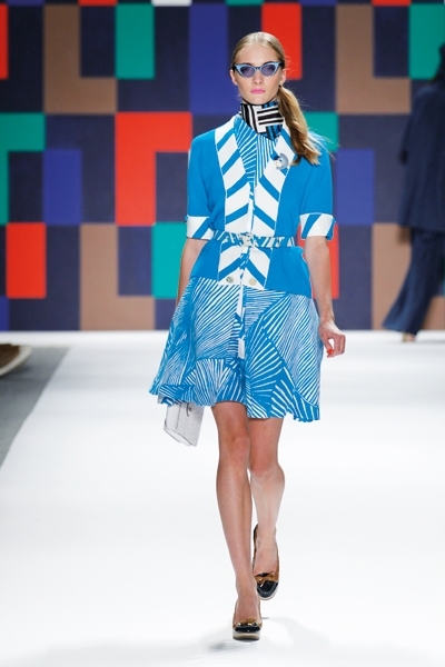 فساتين كثيرة بأقمشة مطبوعة، منها هندسية باللون الأزرق. ميشيل استلهمت تصاميمها من معرض للفنانة Sonia Delaunay. ألوان مزجتها على ذوقها الفرنسيّ، أعجبني فيها البنيّ مع التوركواز، تضيفين اليه البرتقاليّ. لا تنسي أن تلقي نظرة على مجموعة الحقائب التي تقدّمها Milly، ستعجبك حتماً، فهي عصريّة وعمليّة. لفتت نظري أيضاً المناديل حول العنق، شخصيّاً أحبّها ولو أنها تذكّرني قليلاً بمضيفات الطيران.
