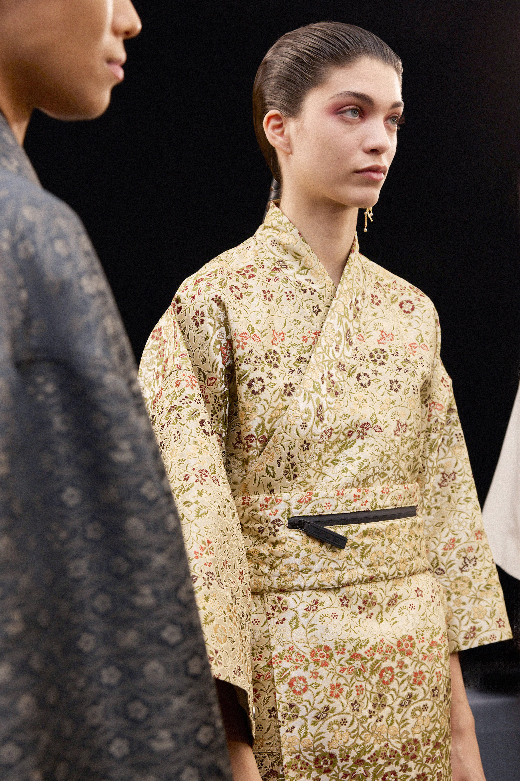 في مجموعة Dior لخريف 2025، تواصل المديرة الفنية Maria Grazia Chiuri بحثها في العوامل الثقافية التي تؤثر في طريقة ارتداء الملابس. تستلهم المجموعة هذا الموسم من تفاعل البُعدين والأبعاد الثلاثة في التصميم، وتظهر هذه الرؤية بوضوح في سترة الكيمونو، تكريماً لإرث Christian Dior الذي قدّم في خريف وشتاء 1957 تصميمَي Diorpaletot و Diorcoat والمخصّصين لارتداء الكيمونو من دون أن يفقد شكله.