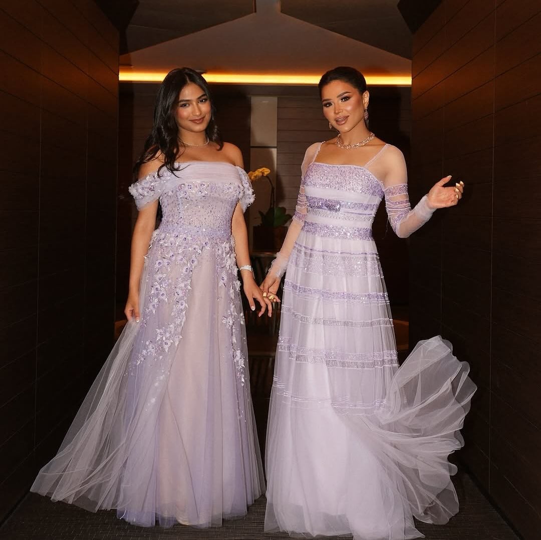 شاركت الإعلامية والمؤثرة نهى نبيل الحفل برفقة ابنتها دانا، بإطلالتين متناغمتين من توقيع Hanayen Couture ارتدت نهى فستاناً أنثوياً مزخرفاً بالترتر اللامع وأكماماً شفافة تنسدل برقة، فيما زادت لمسة الفخامة مجوهرات Blue Diamond ومكياج برونزي مشرق. دانا بدورها تألقت بفستان يشبه تصميم والدتها، يتناسب مع عمرها، بتطريز لامع وأكمام منسدلة، مع تسريحة ويفي ناعمة.