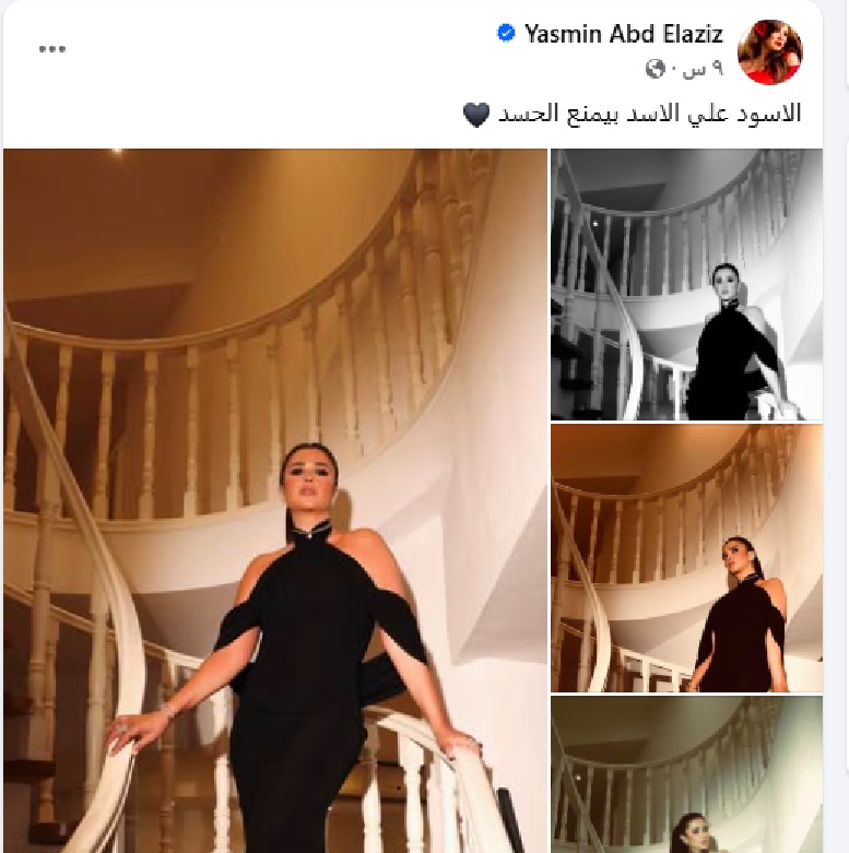 ومازحت ياسمين جمهورها بالحديث عن الحسد في تعليقها على الصور بطريقة لافتة قائلةً: "الأسود على الأسد بيمنع الحسد".