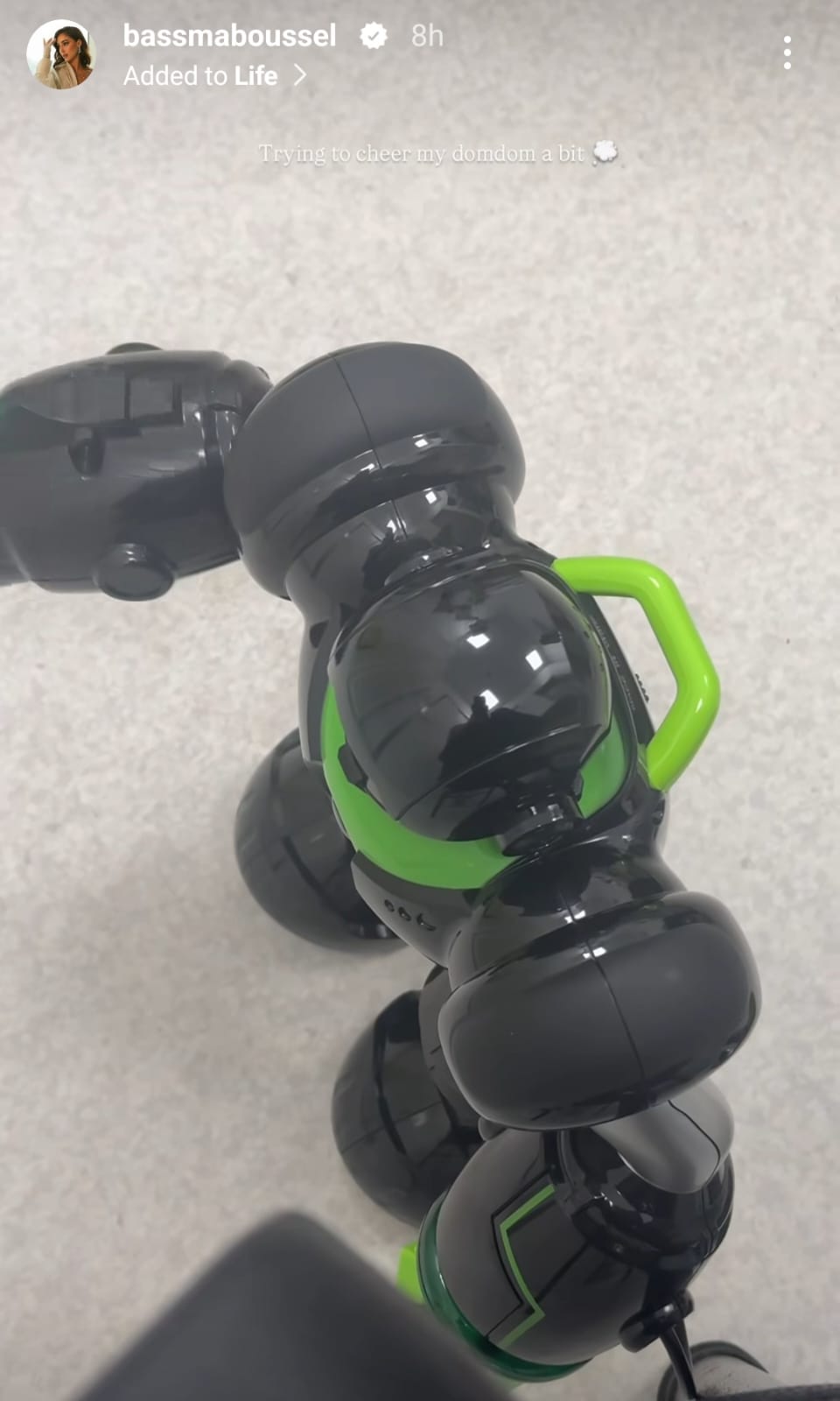 بدورها، شاركت الفنانة بسمة بوسيل فيديو قصيراً للعبة روبوت تتحرك على أرض الغرفة في المستشفى الذي يقيم فيه ابنها آدم، وأرفقته بتعليق أكدت من خلاله أنها تحاول أن تعيد الطاقة والنشاط لابنها الصغير.