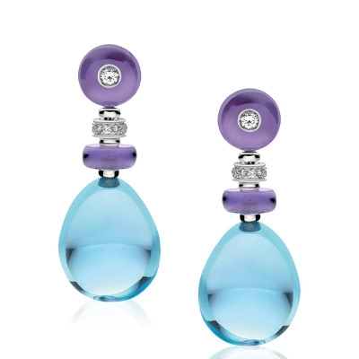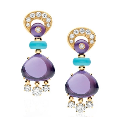 أقراط الأذنين من مجموعة Mediterranean Eden من Bvlgari ، المرصعة بحجارة الجمشت، هي الأكسسوار المثالي لأية حفلة صيفية.