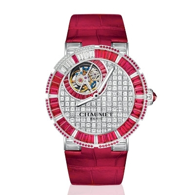 وتزدان كلّ ساعة بمجموعة استثنائية تضمّ ٥٥٨ حجراً يتخطّى وزنها الإجمالي ٢٥ قيراطاً. وتبرز قطعتان فريدتان، واحدة مرصعة بألماس والياقوت الأزرق، وأخرى مرصعة بألماس والياقوت الأحمر، إلى جانب مجموعتين محدودتين تضمّ كلّ منها أربع قطع، رُصّعت كلّ واحدة منها بألماس الأبيض وألماس والأسود.
