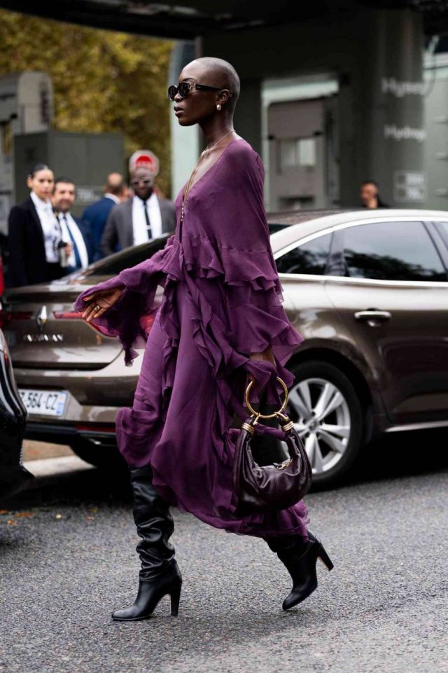 لم يتوقف الحضور البنفسجي على الملابس فقط، بل امتد إلى الإكسسوارات من حقائب اليد، الأحذية، النظّارات الشمسية، وحتى طلاء الأظافر. قطعة واحدة بلون بنفسجي كفيلة بتحويل أي إطلالة بسيطة إلى أخرى لافتة وأنيقة.