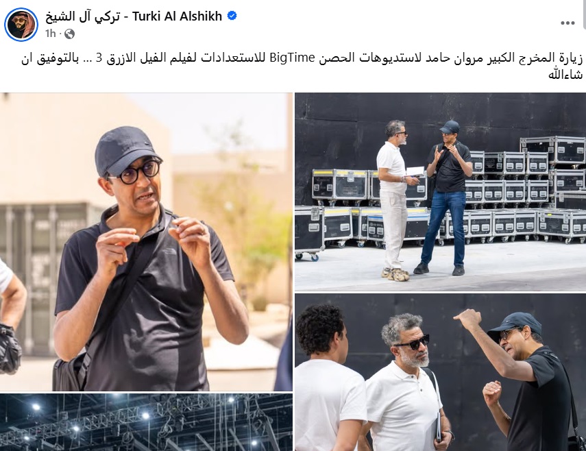 وظهر المخرج في الفيديو خلال قيامه بجولة في الاستوديوهات، فيما علّق آل الشيخ قائلاً: "زيارة العزيز المخرج الكبير مروان حامد لاستديوهات الحصن BigTime للاستعدادات لفيلم الفيل الأزرق 3.. بالتوفيق إن شاء الله".