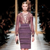 عرض عسكري في قاعة مذهّبة تملؤها المرايا: تسير امرأة بخطوات ثابتة تمنحها طابعاً صارماً لا يخلو من الإثارة والجمال فيما تكشف نظراتها عن عمق وقوة في الشخصية. درس جمالي في القصّات الخطيّة تجسّده خياطة رائعة. فالأناقة تكمن في التفاصيل: الذهب المعتّق للأزرار المنقوشة، وتنورة الأستراخان الناعمة وأطرافها المزركشة.