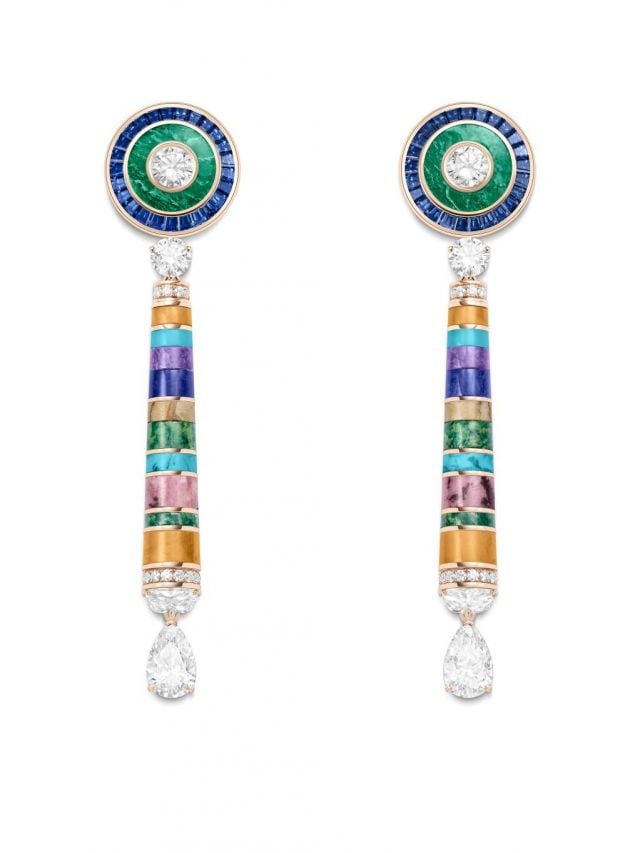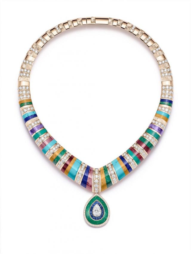 تألقت إيلا ريتشاردز، وجه الدار، بعقد سوتوار متمايل مرصّع بالزمرد الأخضر والألماس الأبيض، يتوسّطه ميناء من الملاكيت، بإطلالة تنبض بالإشراق والفخامة.