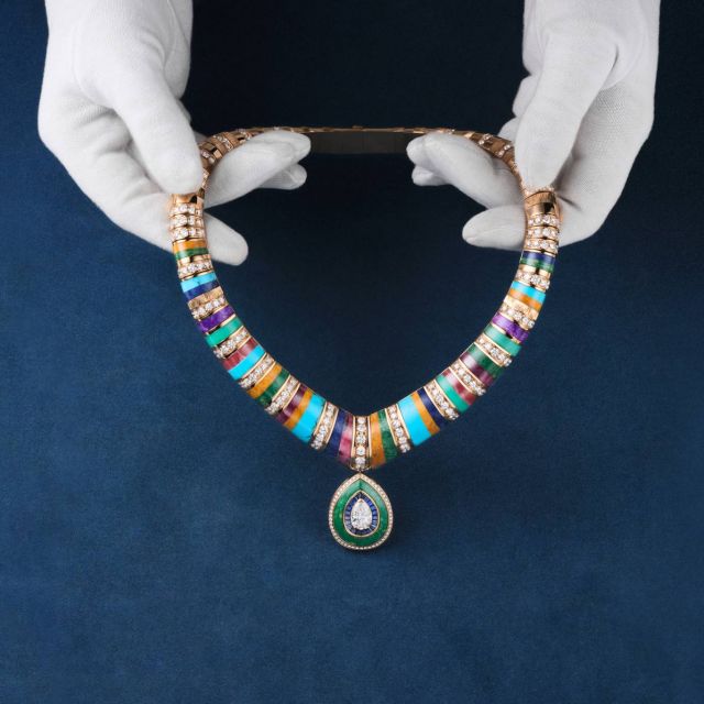 تألّقت الممثلة الأميركية وصديقة الدار آمبر فاليتا بعقد سوتوار متمايل المُصاغ من الذهب الوردي، والمزيّن بعقيق كارنيليان باللونين الأحمر والبرتقالي، وأوبال أبيض، وحبّات قلب من الياقوت الأحمر المصقول، وسافير أصفر، وألماس أبيض، وسبينيل زهري بقطع الوسادة، وياقوت أحمر بقطع الوسادة، وأوبال أبيض بكابوشون بيضاوي (11.7 قيراطاً).