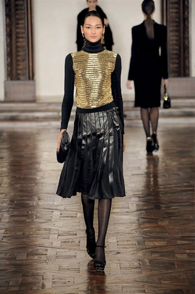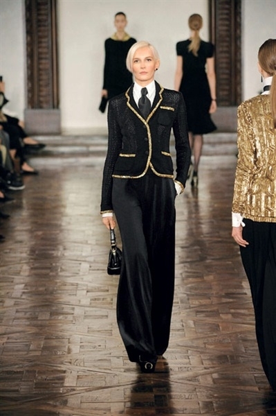 يبهرني عرضه كلّ موسم... ويبهرني أكثر تنسيقه للأزياء والأكسسوارات، تجعلك تريدين ارتدائها على الفور، لمناسبة أو غير مناسبة. أعجبتني كثيراً ربطات العنق باللون البنفسجيّ، والفستان الطويل البنفسجيّ أيضاً للسهرات، وآخر ذهبيّ مع سترة قصيرة من الجلد، والبوليرو من الريش بالأسود والذهبيّ، وقميص معدنيّ ذهبيّ... كما أعجبتني الأكسسورارت البرّاقة الكبيرة لطلّة في النهار مع قميص عاديّ، والسلاسل الذهبيّة الناعمة التي أضافها إلى السترات.