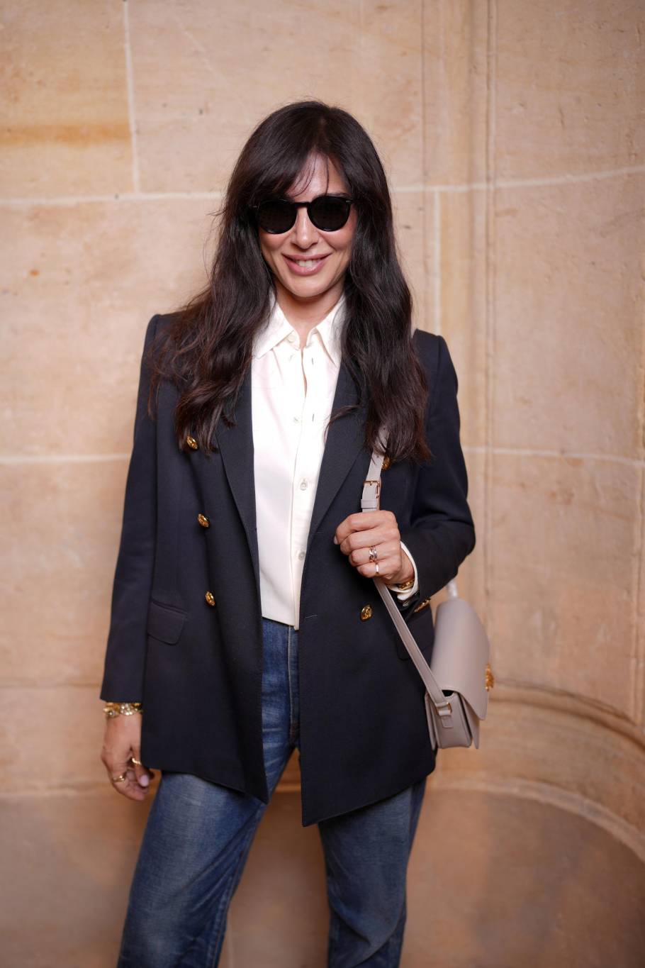 وحضرت العرض أيضاً المخرجة اللبنانية نادين لبكي، وتألقت بملابس عملية وراقية عبارة عن بلايزر كلاسيكية سوداء بتصميم ناعم نسّقتها مع قميص أبيض كلاسيكي وجينز، وحملت على كتفها حقيبة صغيرة الحجم باللون الرمادي.